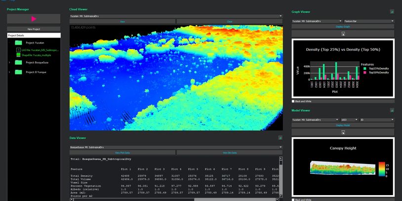 Viridis uses the following features to provide users an intuitive and visually compelling platform for processing and visualizing LiDAR data: